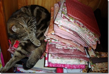 I have managed a bit of stitching this week too … this disappearing 9 patch table runner is a Christmas gift for a friend … This isn’t a verygood piccy … the colours are much prettier in the flesh ;o). They’re Moda “Shades of Blue”. I’ve also been making something else – but I can only give you a sneaky peek …