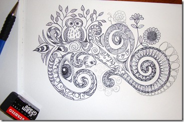Hope your feeling much better now. That doodle of yours is beautiful.Would love to see that little owl in the branches done as a stitchery pattern. Can just see that on something for my daughter. So cute.